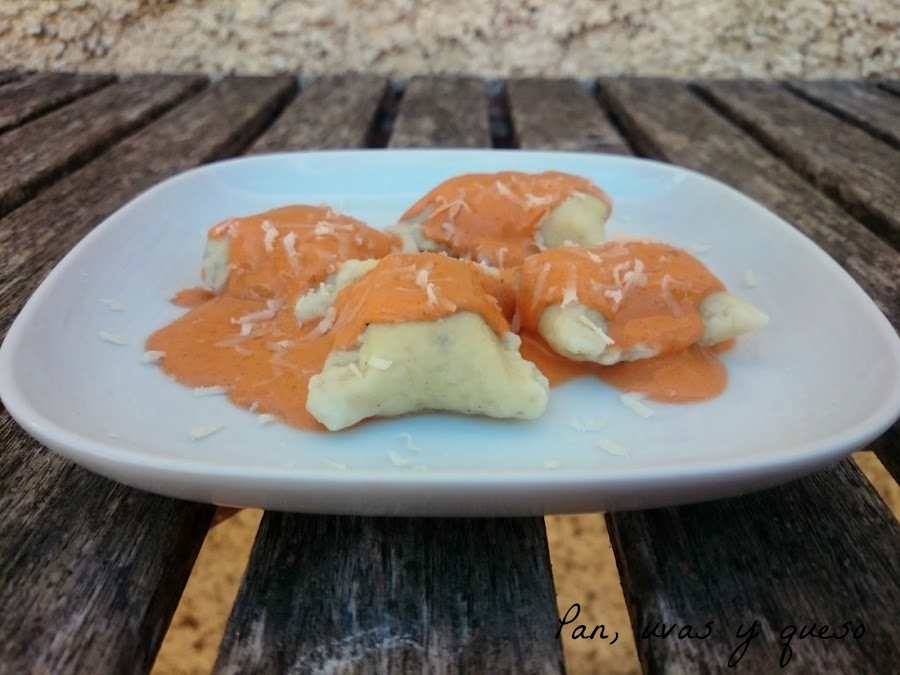 Servimos los ñoquis con la salsa y queso parmesano recién rallado.