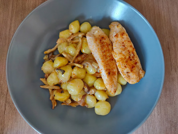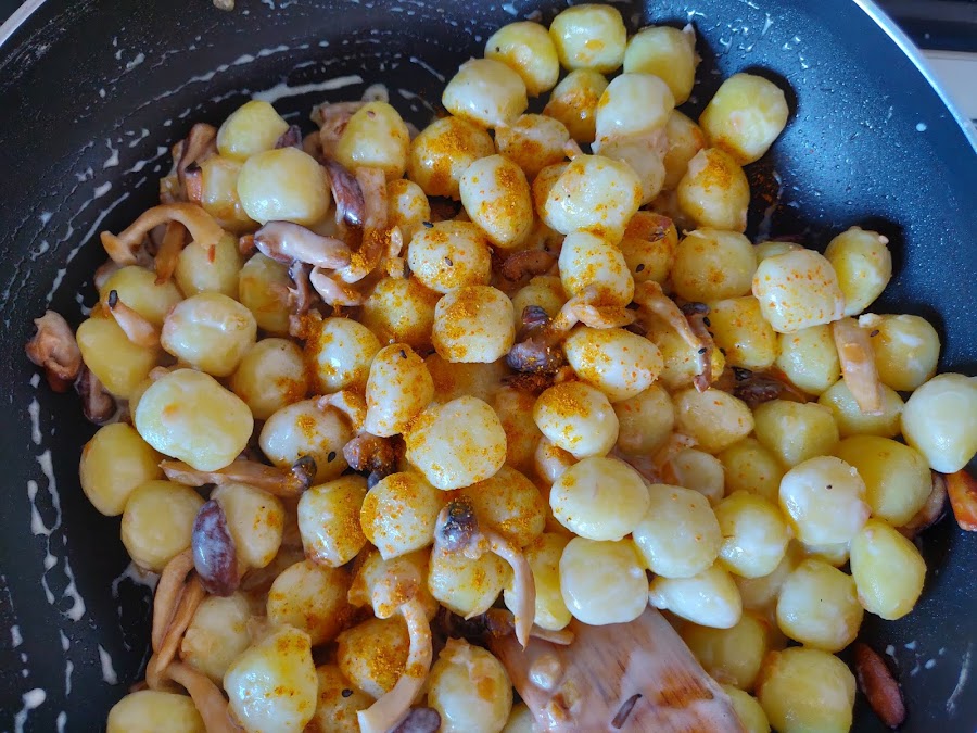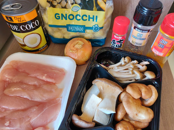 Hoy os traigo una receta de ñoquis cremosos con setas orientales y pollo especiado. Empecemos con los ingredientes: