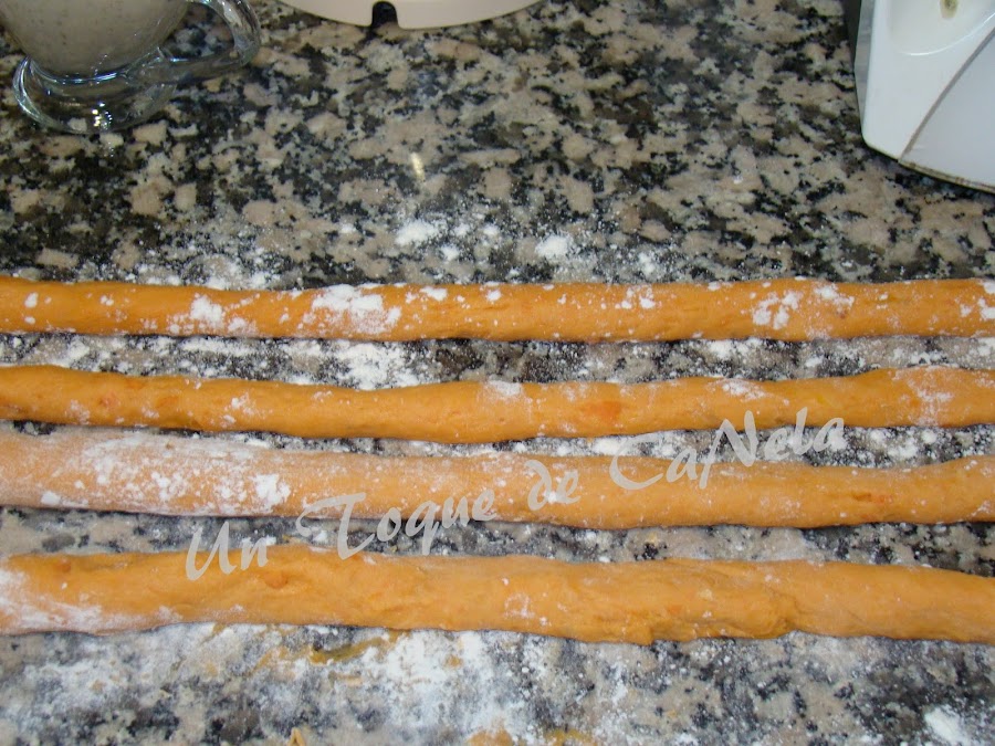 Dividir en porciones y hacer rodar cada una de ellas hasta formar un cilindro largo y estrecho.