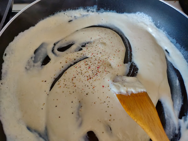 Para terminar con la salsa agregamos un poco de pimienta recién molida y servimos enseguida, ya que en cuanto enfríe se espesará bastante.