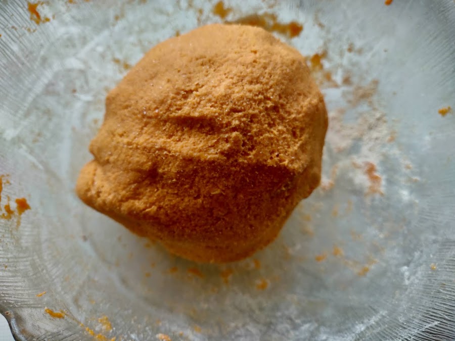 Hay que conseguir que la masa deje de estar pegajosa y se pueda trabajar bien con las manos formando una bola para, posteriormente, poder cortar los ñoquis. Yo en esta ocasión usé unos 200gr de harina.