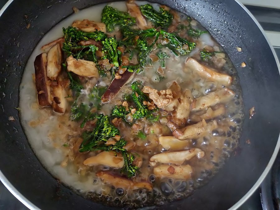 Seguidamente lo añadimos a la sartén y dejamos un par de minutos mientras se va calentado el agua para los ñoquis.