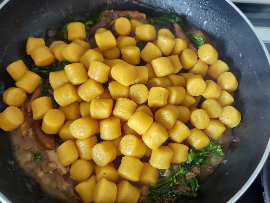 Agregamos a la sartén y dejamos cocer hasta que estén listos los ñoquis.