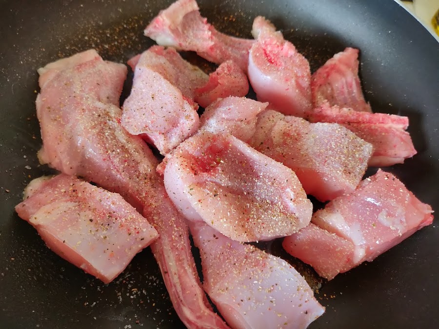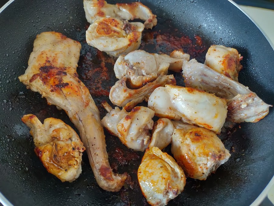 Empezaremos cocinando el conejo con un poco de pimienta y cebolla en polvo.