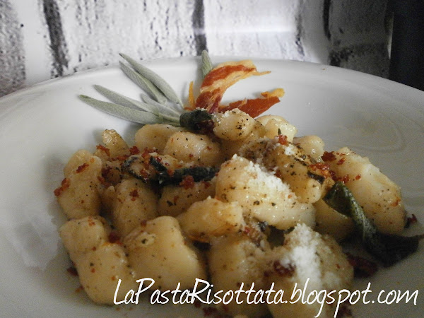 Con poco tempo e poche entrate (accidenti:proprio ora che sono tornata nella civiltà e ogni volta che entro in un super o in un negozio mi prende un coccolone perchè vedo finalmente Ingredienti con la I maiuscola di cui neppure ricordavo o conoscevo lesistenza ,ma...finchè non trovi uno straccio di lavoro...)non ho molta scelta e poi,comunque, a dir la verità, gli gnocchi che mi piacciono di più son quelli al burro e salvia. Io sono una di quelle a cui la pizza che piace di più è la Margherita e la stessa legge vale per gli gnocchi.