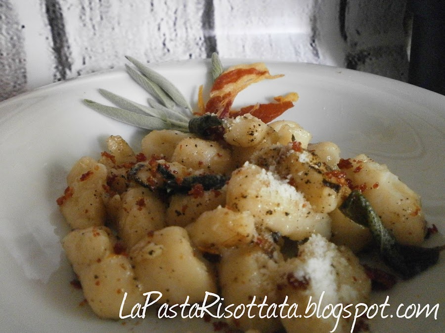 Gnocchi di patate al burro,salvia, aglietti freschi e briciole di prosciutto crudo