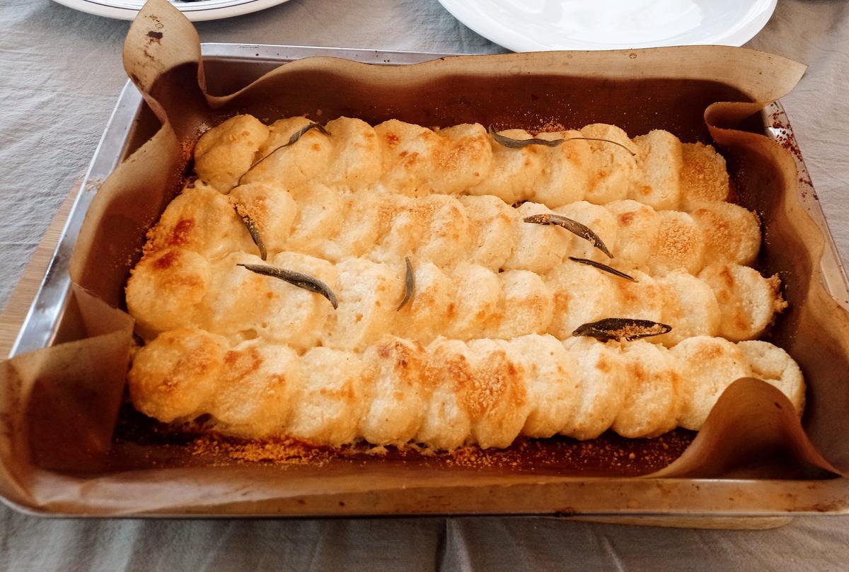Cuando llevaba la fuente a la mesa, con ese aroma que invade el ambiente y el color dorado del gratinado me sentí una de las madres de aquella época, que cuando servía este plato escuchaba el grito de los niños Ridi ridi, che mamma ha fatto i gnocchi”(sonríe, mamá ha preparado los ñoquis)