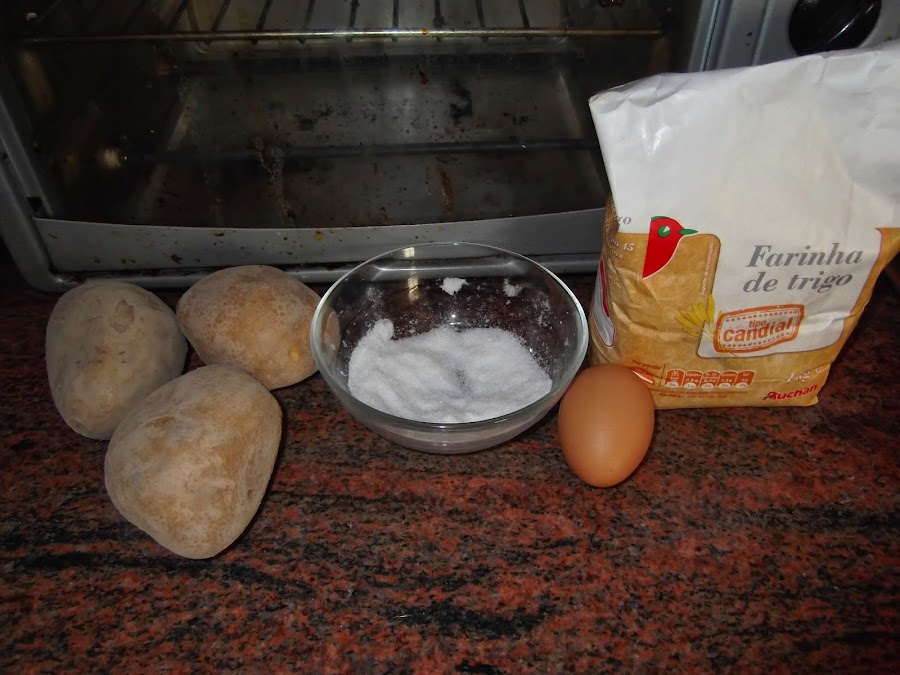 Con el puré hacemos un volcán y en el hueco echamos la sal y el huevo batido y vamos mezclando mientras incorporamos la harina, reservando un poco para cuando haya que trabajar la masa en nuestra encimera.