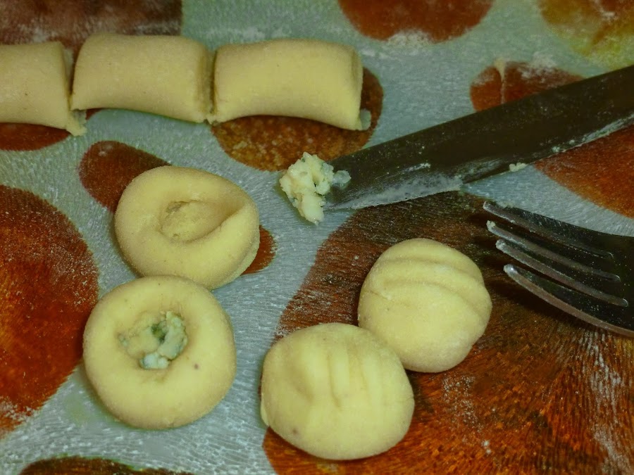 Ñoquis rellenos de gorgonzola con aceite de guindilla