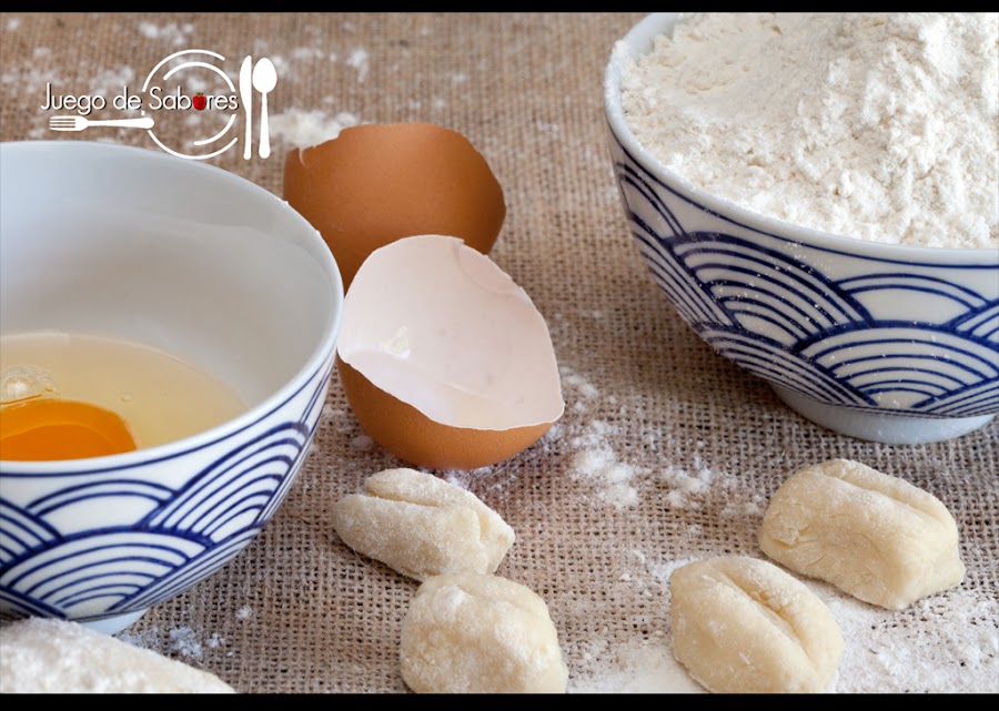 La base fundamental de los ñoquis son la patata, la harina y el huevo, amasados y hervidos en agua con sal. Comidos así, sin más, suelen ser sosos por lo que se hace imprescindible acompañarlos de una buena salsa; y en cuestión de salsas la imaginación es libre.
