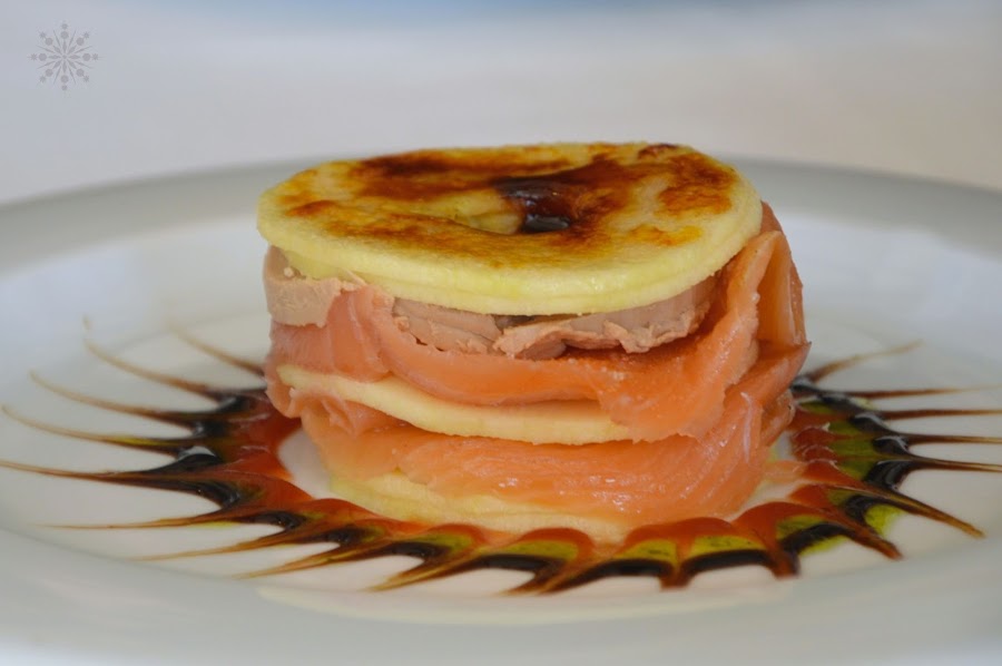 A ello le siguió el sorprendente milhojas de manzana caramelizada, foie y salmón: una combinación que al principio puede sonar un poco extraña pero que os aseguro que engancha. Estaba delicioso!