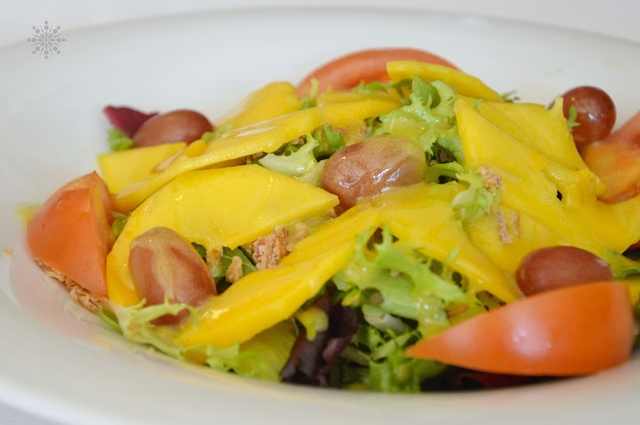 Comenzamos con una ensalada de mango: fresca y llena de sabor.