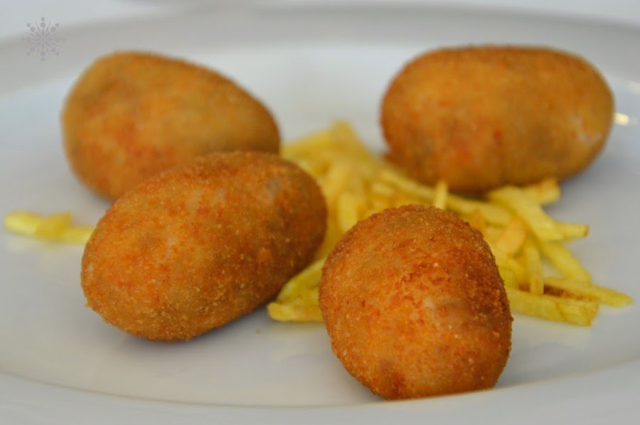 De aperitivo: chistorra y unas croquetas de jamón. Perfecto para ir abriendo el apetito.