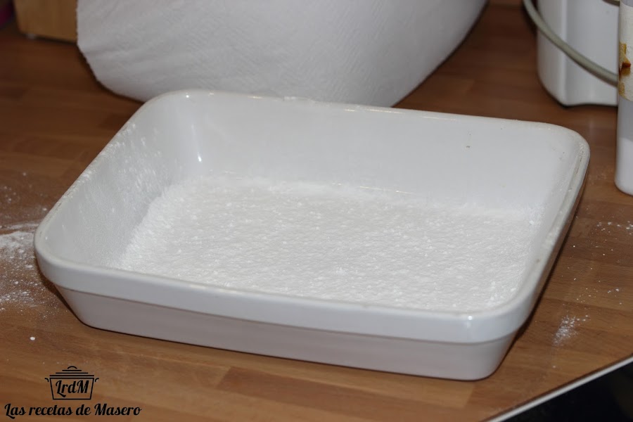 En una bandeja espolvoreamos azúcar glass.
