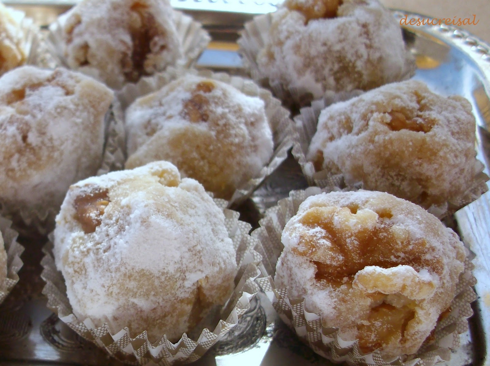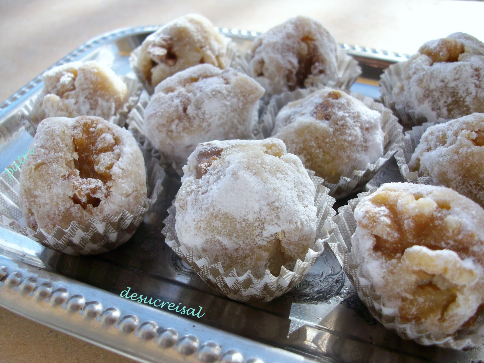 y entonces ...se forman bolitas con la mano....y al a vez se mete dentro uno o dos trocitos de nuez..