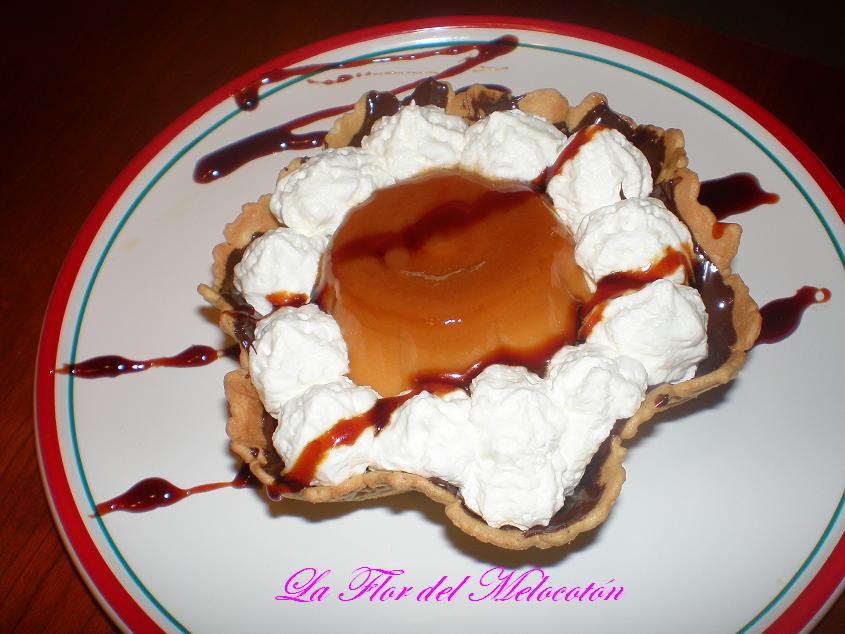 Ponemos el flan en el centro. Tarea complicada porque se va para todos los lados!