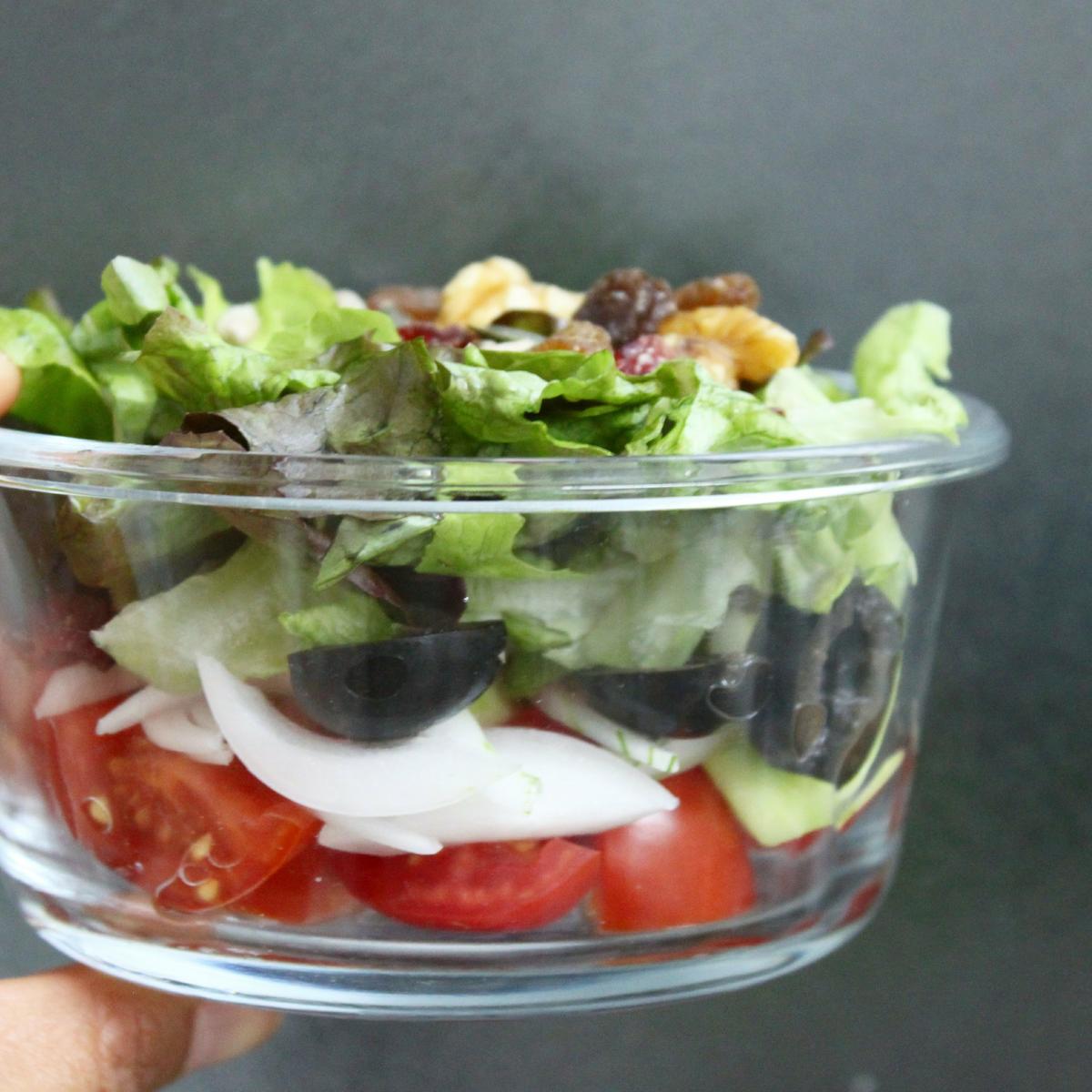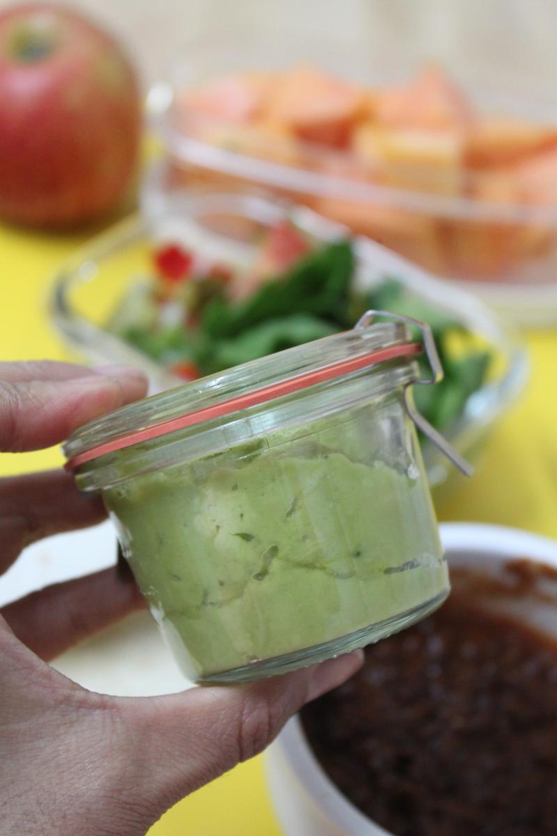 Para llevar las ensaladas y fruta cortada el bote de cristal con tapa del Ikea es perfecto.