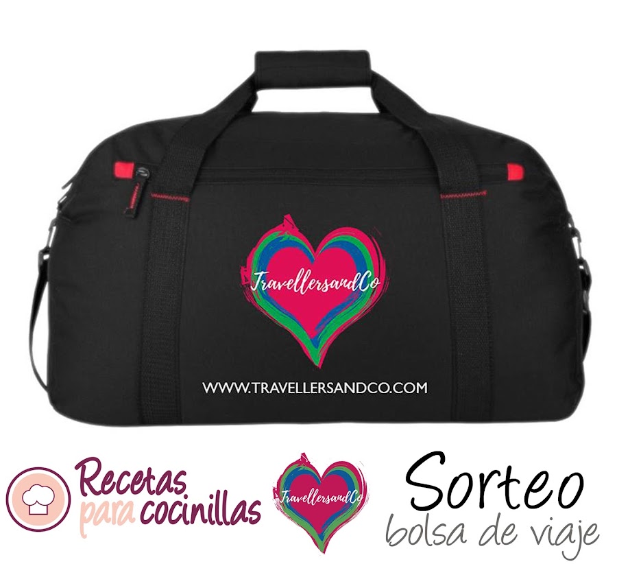 Como nos gusta tanto su blog queremos que lo conozcáis tan bien como nosotros, así que vamos a sortear con ellos una fantástica bolsa de viaje como la de la imagen (36cm de alto x 27cm de ancho), con un bolsillo portadocumentos incluido, para que lleves tus cosas siempre que viajes de forma cómoda, ¡o para guardar tus recetas y utensilios de cocina!
