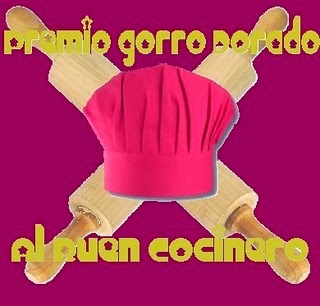 Ya vamos terminando, ahora le toca el turno a Trini Altea. Seguro que todos la conoceréis, pues lleva mucho tiempo en estas lindes y tiene un blog estupendo, además de pagina en Facebook y mucho mas. Dejo su link para que veáis las cosas tan ricas que prepara http://cocina-trini.blogspot.com.es/2011/05/premios.htmlMe dijo que me concedía uno de sus premios o los que quisiera y elegí Premio gorro dorado al buen cocinero.