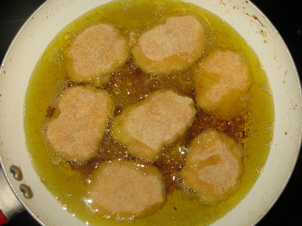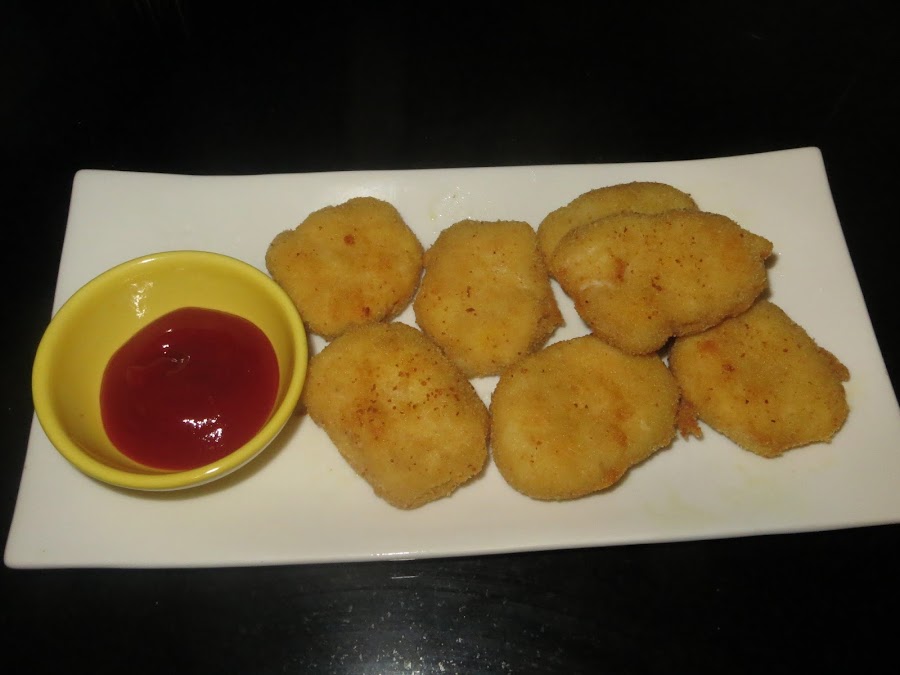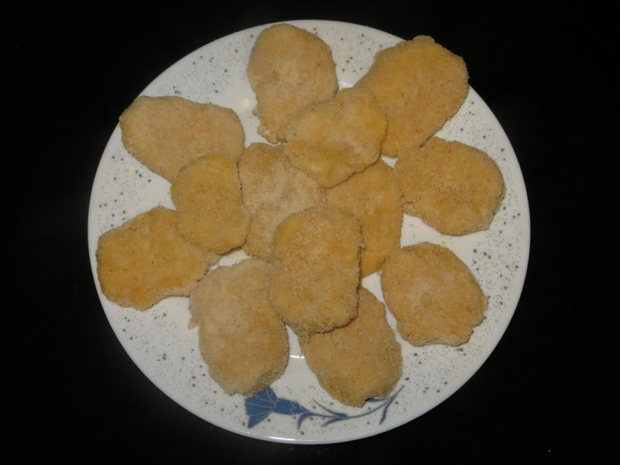 Una vez tenemos mezclado todo, metemos la mezcla en el frigorífico para que coja cuerpo. La sacamos pasadas unas horas y hacemos bolas, las aplastamos un poco para darles forma de nuggets, las pasamos por pan rallado, por huevo batido y otra vez por pan rallado. Lo ponemos a freír en abundante aceite y cuando esté dorado lo sacamos a papel absorbente. Lo podéis acompañar con la salsa que más os guste o incluso congelarlos.