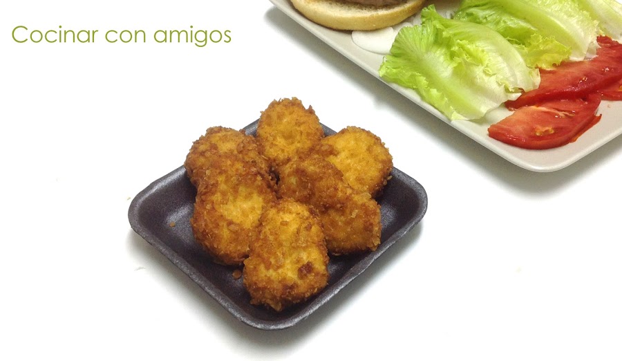 Siempre que cenamos "hamburguesa casera" nos gusta acompañarla con algún entrante que generalmente son unos nuggets de pollo con salsa barbacoa, el otro día por primera vez me animé a prepararlos caseros y el resultado fue muy aplaudido.
