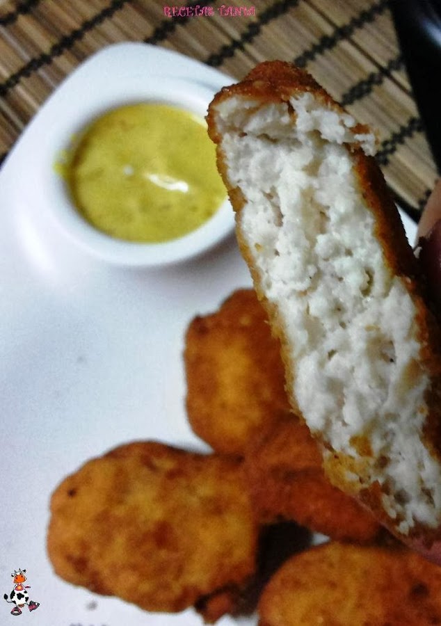 emplatamos y acompañamos de la salsa de que más nos guste. En mi caso hice una salsa de mostaza y miel. En un bol ponemos una cucharada de mayonesa,una cucharada de mostaza dulce,una cucharada de miel y removemos bien y lista para mojar y comer!!! Riquísimos :D