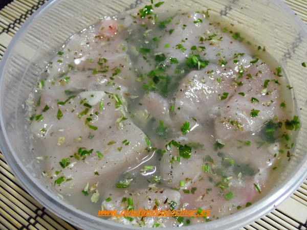 Poner en un bol con los ingredientes del macerado y dejar tapado durante 1h en el frigorifico