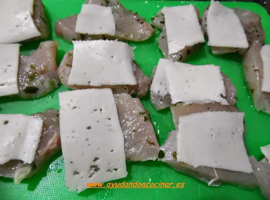 Abrir los libritos de carne y colocar un trozo de queso en cada uno de ellos.