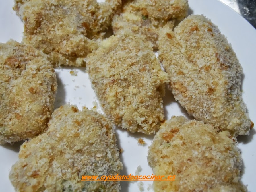 Ya he comentado en más de una ocasión, que los fritos no deben ser un habitual en nuestra dieta, pero no por ello significa, que no se puedan consumir..... y como prueba de ello, aquí os dejo unos nuggets de pollo con queso en versión casera.