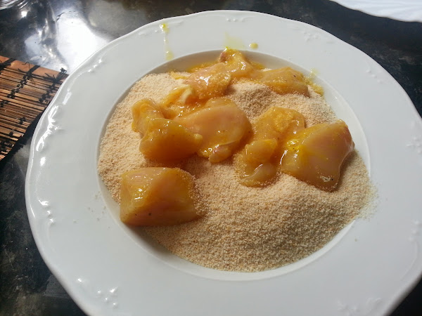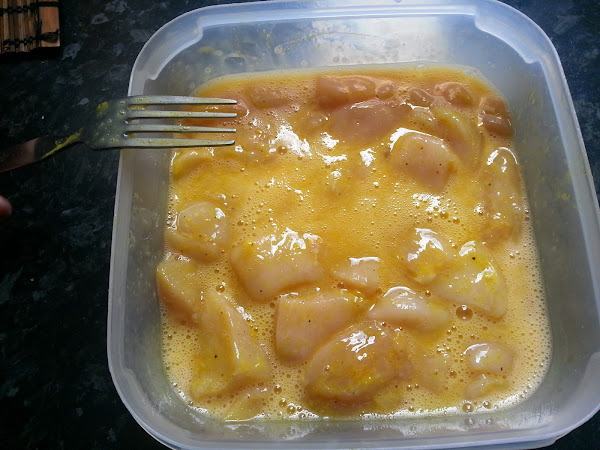 Pasamos el pollo por el huevo de forma que quede bien empapado