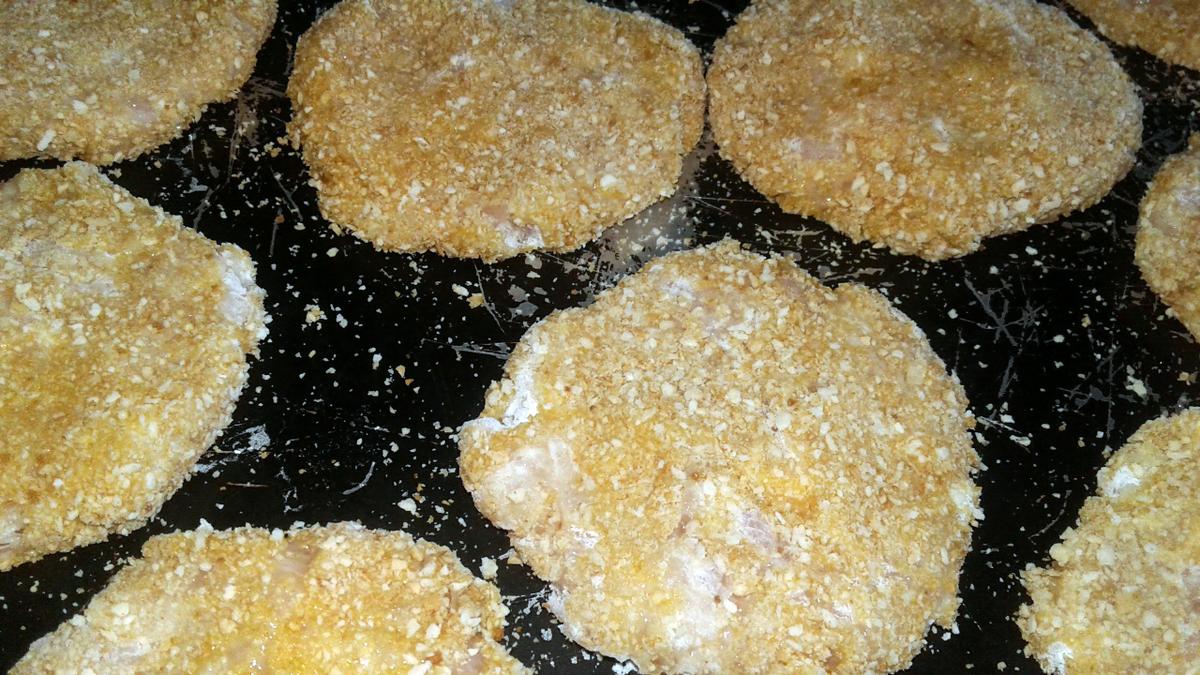 Aplastamos las bolitas, quedando la forma de los nuggets.
