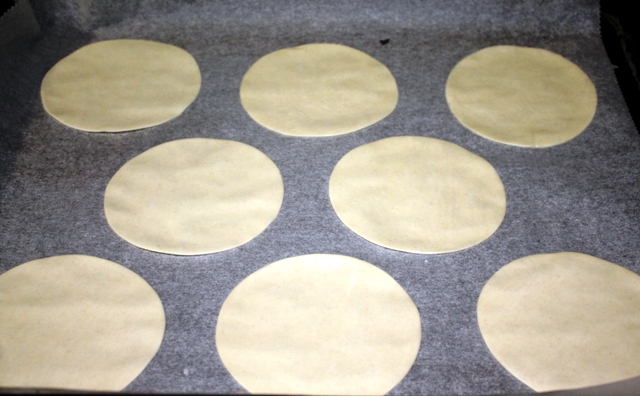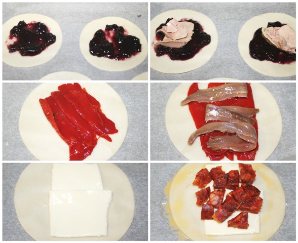 Ponemos el relleno en el centro (los bordes hay que dejarlos libres para poder unir con la que nos servirá de tapa.