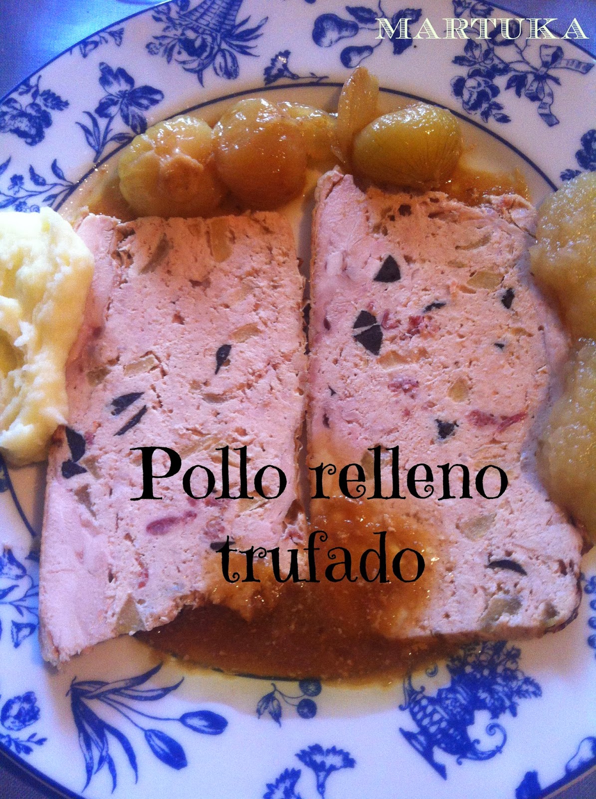 En el día de Navidad siempre compartimos en casa de mis padres el Pollo relleno trufado (pincha aquí) acompañado de su guarnición de purés de manzana y patata, cebollitas francesas y setas.