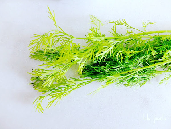 Añadimos otra cucharada de crème fraîche y un poco de nuez moscada, sal y pimienta. Decoramos con un poco de eneldo picado.