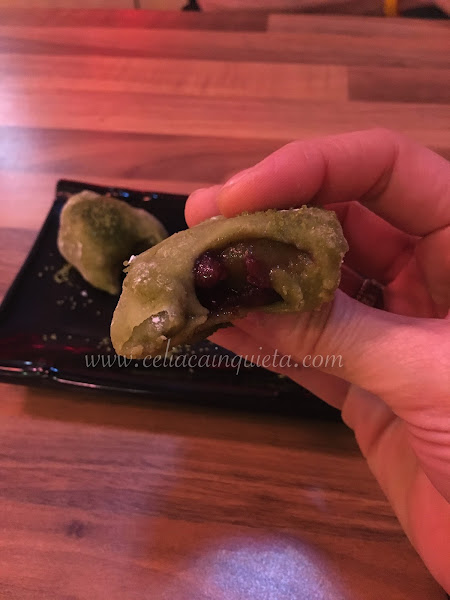 Yo probé el Mochi de Té Matcha relleno de Anko (judías japonesas) y estaba delicioso.