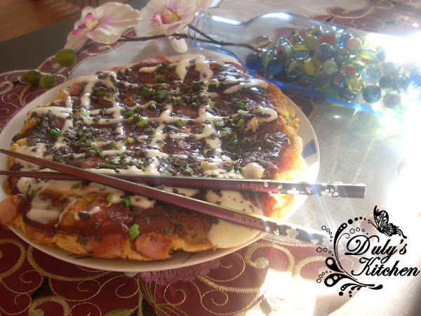 Hoy os traigo otra receta temática que me encanta, en esta ocasión receta japonesa, Okonomiyaki o Pizza japonesa. La llaman pizza japonesa por su aspecto final pero no tiene nada que ver con las pizzas que nosotros conocemos. Okonomiyaki significa cocinar a la plancha, según a la región que vayas la cocinan de una forma u otra y hay infinidad de ingredientes que le puedes añadir. La versión que vamos a preparar hoy fue la que comimos en Osaka, más adelante os pondré la de Hiroshima que lleva fideos en la mezcla y está también riquísima.