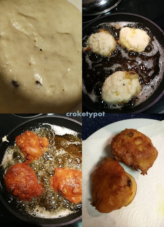 Tomamos la medida de una cuchara grande o de helado y lo vertemos en el aceite, se deja unos 4 minutos de cada lado hasta que lo vemos dorado. Dejamos escurrir en un plato con papel de cocina para que pierda el aceite.