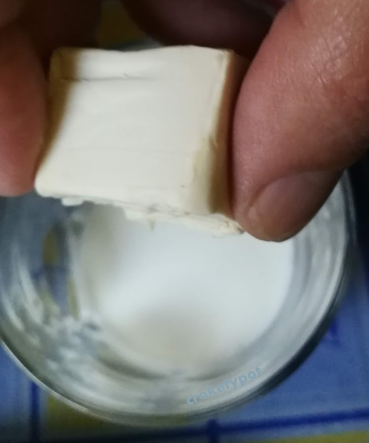 Para hacer las bolas, primero templamos la leche no más de 27º y disolvemos la levadura.