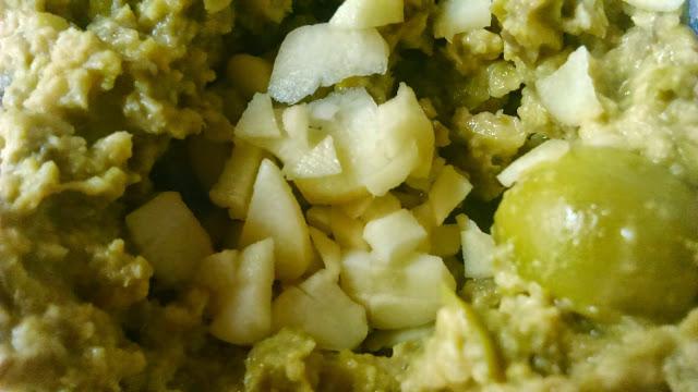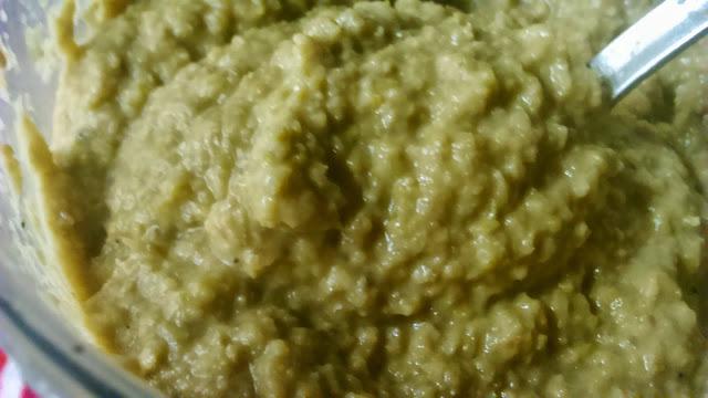 Trituramos en el mortero o con la batidora. Según trituremos nos quedará más rústico o más fino. En mi caso, un punto intermedio, que no se note la piel de la aceituna, pero que tampoco quede demasiado licuado.