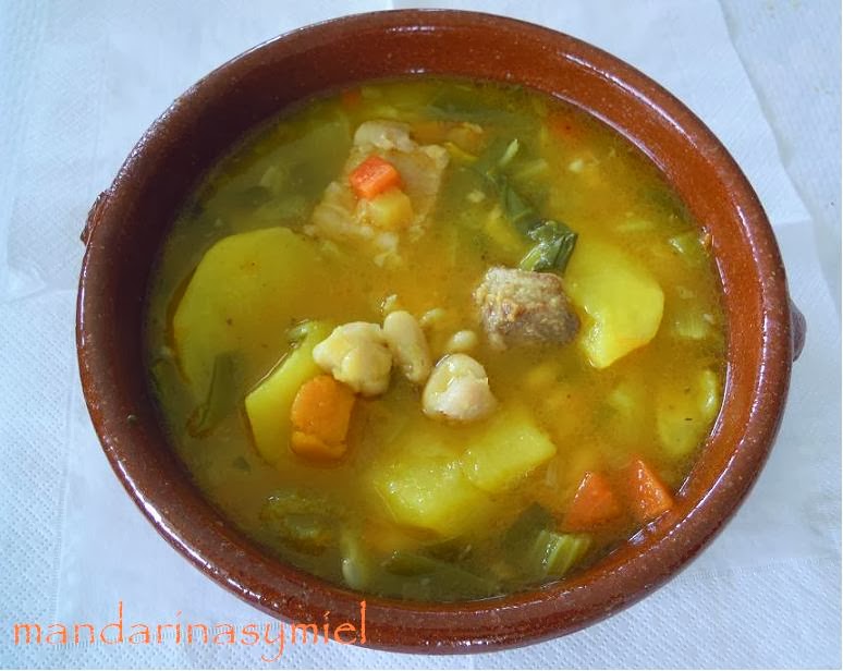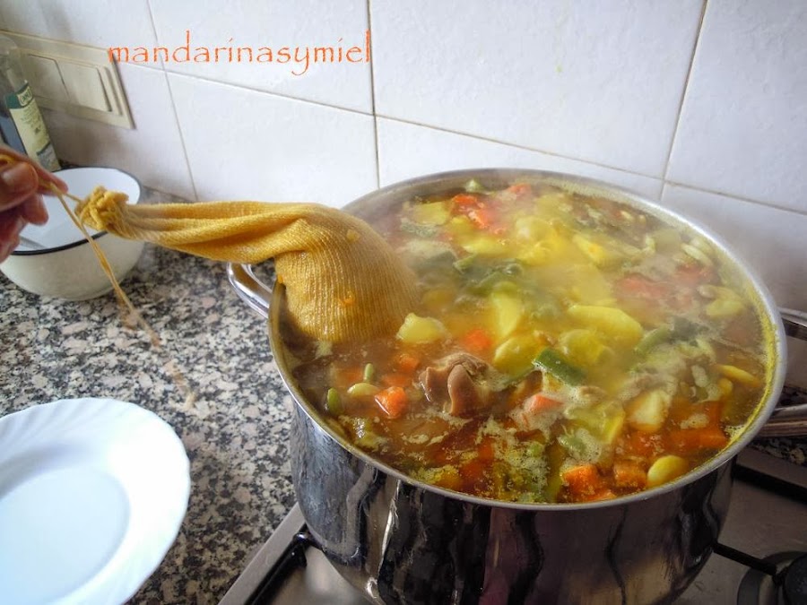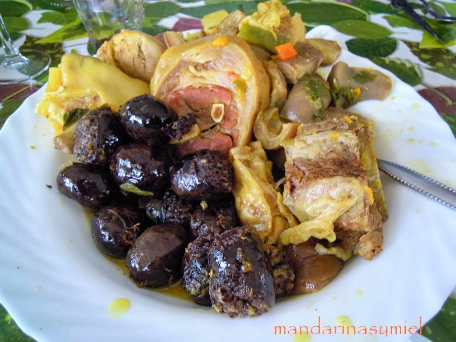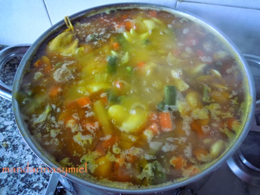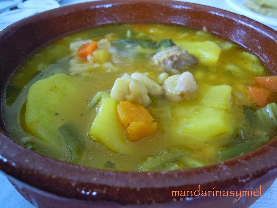 Una vez al año, más o menos por las mismas fechas, un amigo y mi marido nos preparan para todos una olla que está espectacular, no se le puede añadir nada más porque lleva de todo (no os podéis imaginar las calorías que tiene), pero bueno, ya lo quemaremos....