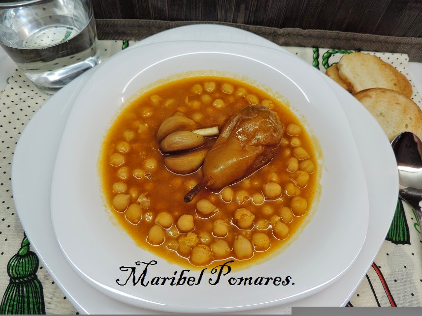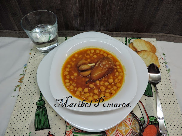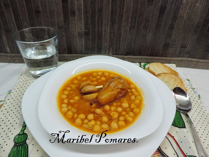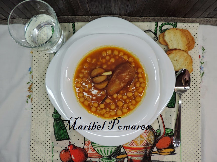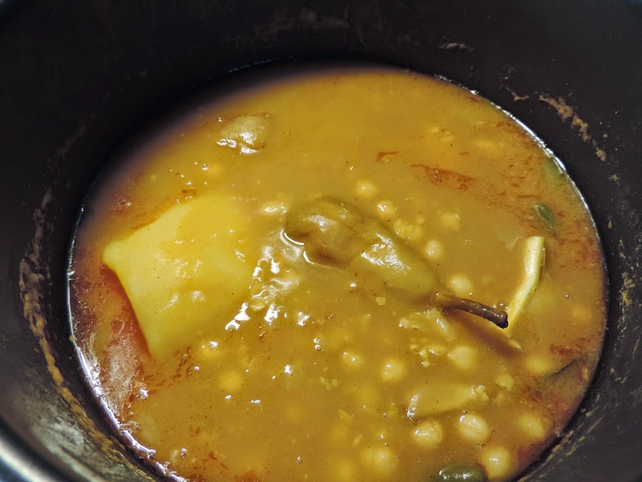 Echamos agua hasta que se cubran los garbanzos, el resto de las verduras se quedarán sin cubrir.