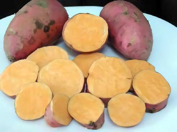 Las papas las cortamos en cubos y los boniatos en rodajas gruesitas.
