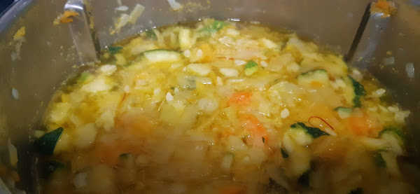 3.- Añadimos el aceite y la ñora picada y programamos 5 minutos, 120º, velocidad 1.