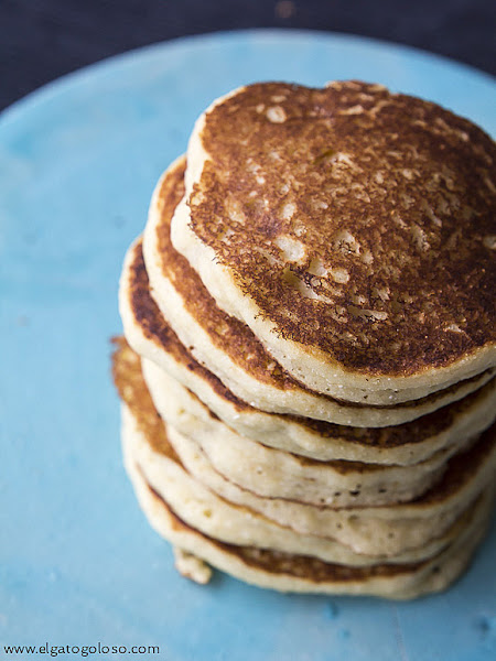 También he estado trabajando en desarrollar una masa para pizzas gluten free. La última que realicé ayer era para caerse de la silla... pero del susto porque resultó bastante mala. Es muy frustrante cuanto se intenta hacer panes y masas sin harina de trigo, ya lo dije el otro día, pero por ahora volvamos a las panquecas.