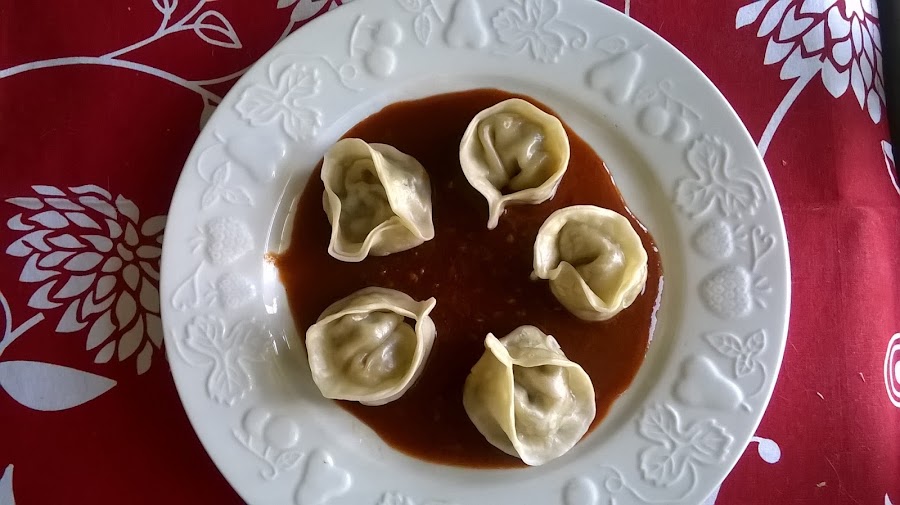 These are the Veal Dumplings in Ancho Chile Sauce.
