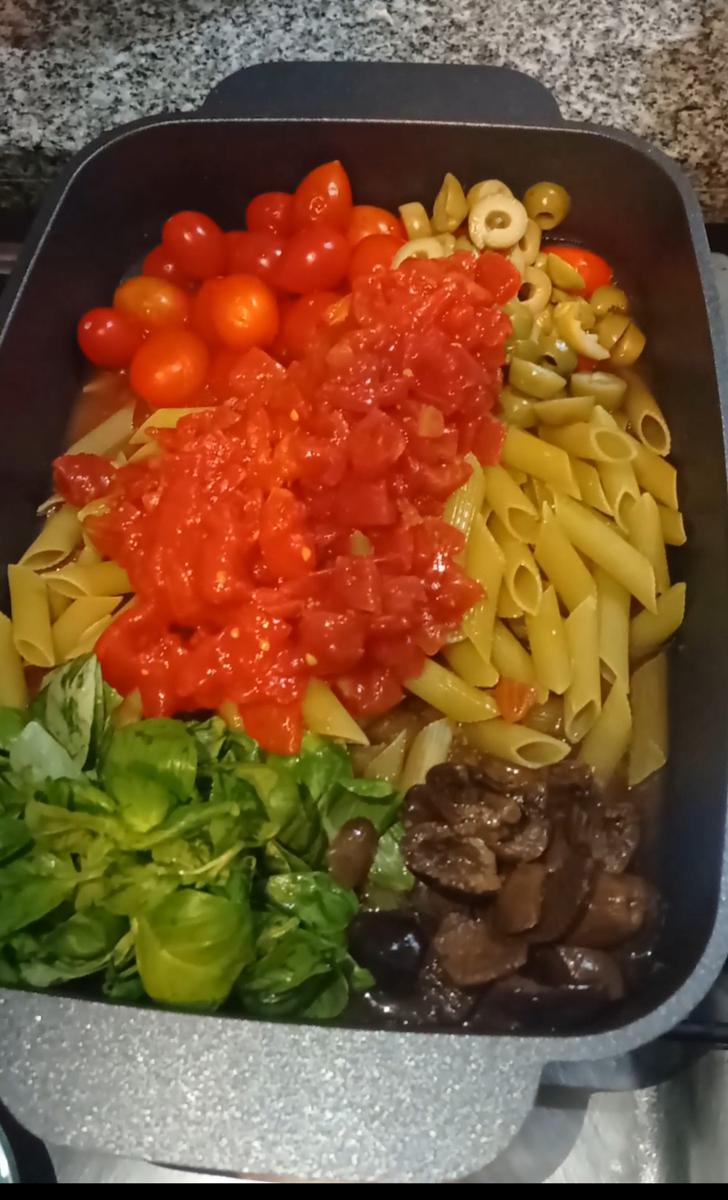 Hay mucho para decir de esta receta fácil , rápida y sabrosa de One pot pasta, o cocinar todo en una sola olla.Lo hice en mi olla rectangular Essen https://www.essen.com.ar/home/ que es una genialidad!!!