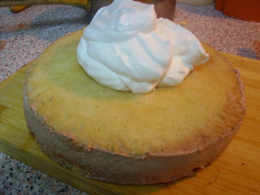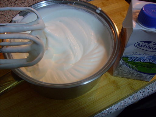 montamos 200g de nata (crema de leche) y añadimos 2 cucharadas de azucar