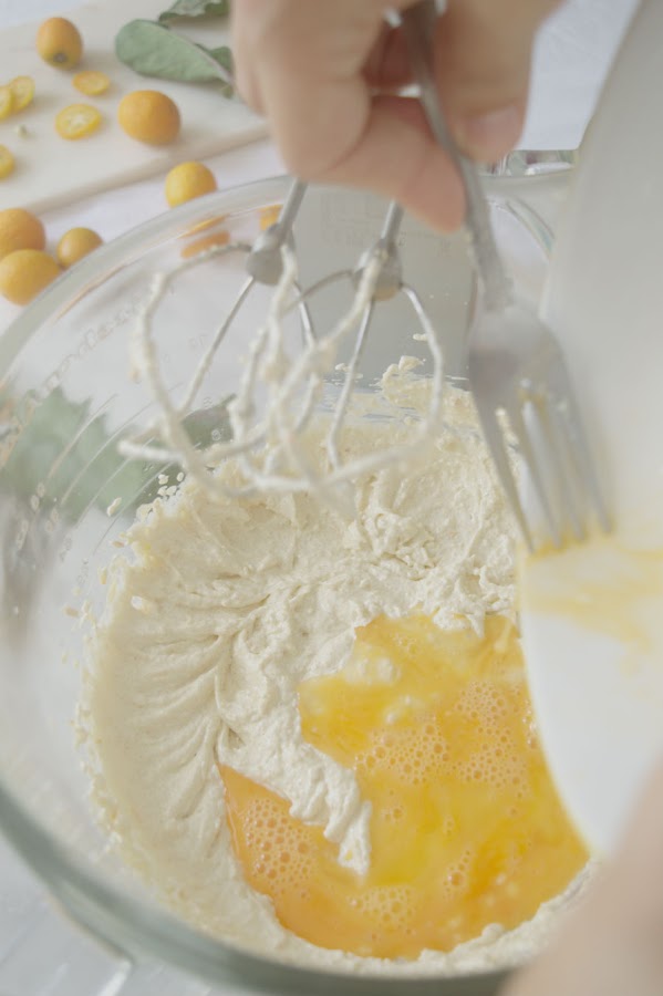 Add eggs one at a time, lightly beaten. Do not add the following egg until the previous one is well combined.