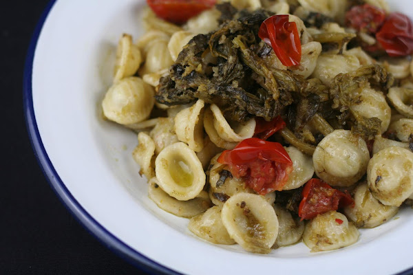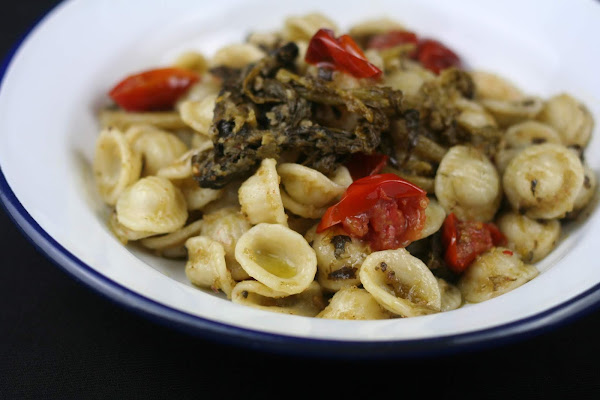 200 grs de orecchiette; 1 manojo de grelos o 1 bote de grelos en conserva; tomates cherry;