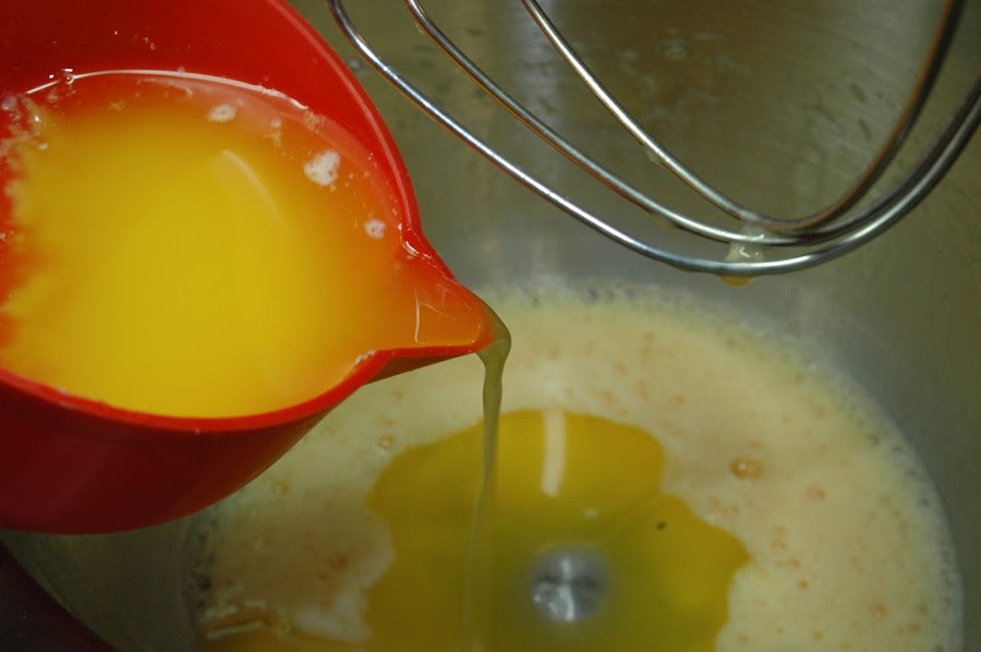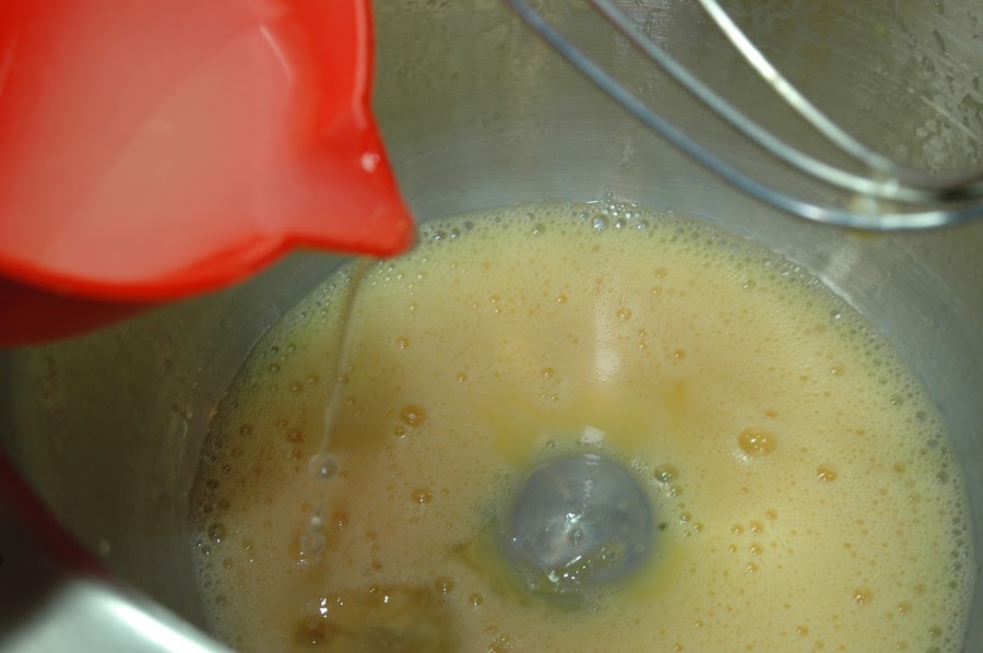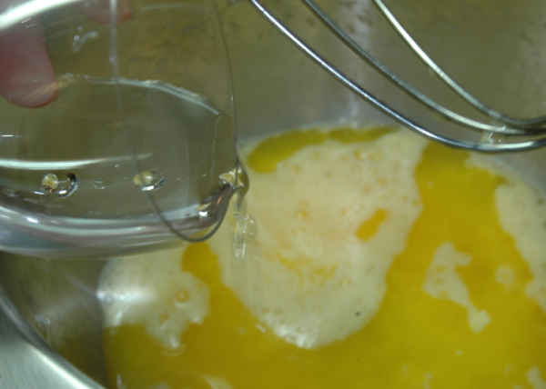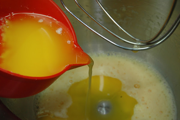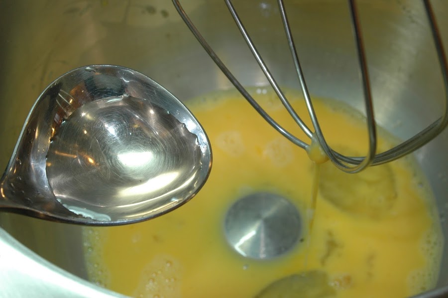 Se rompen los huevos y se baten ligeramente, se añade el resto de los ingredientes mezclando por orden de la lista.